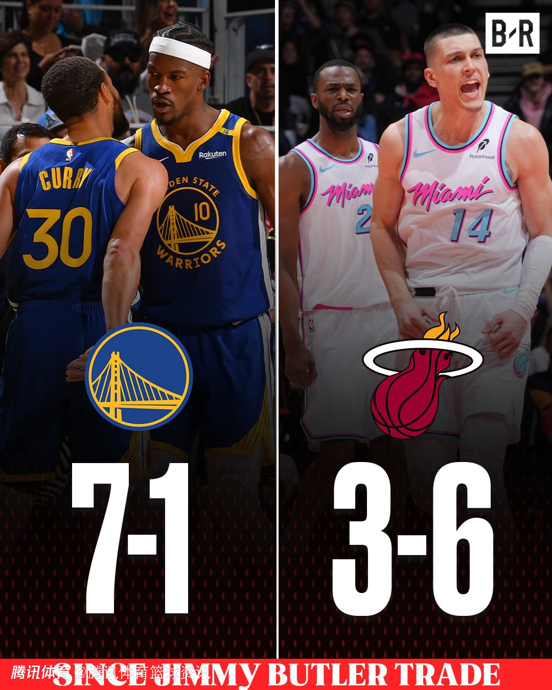 自从巴特勒交易发生后,勇士取得7胜1负的战绩,热火则收获3胜6负。