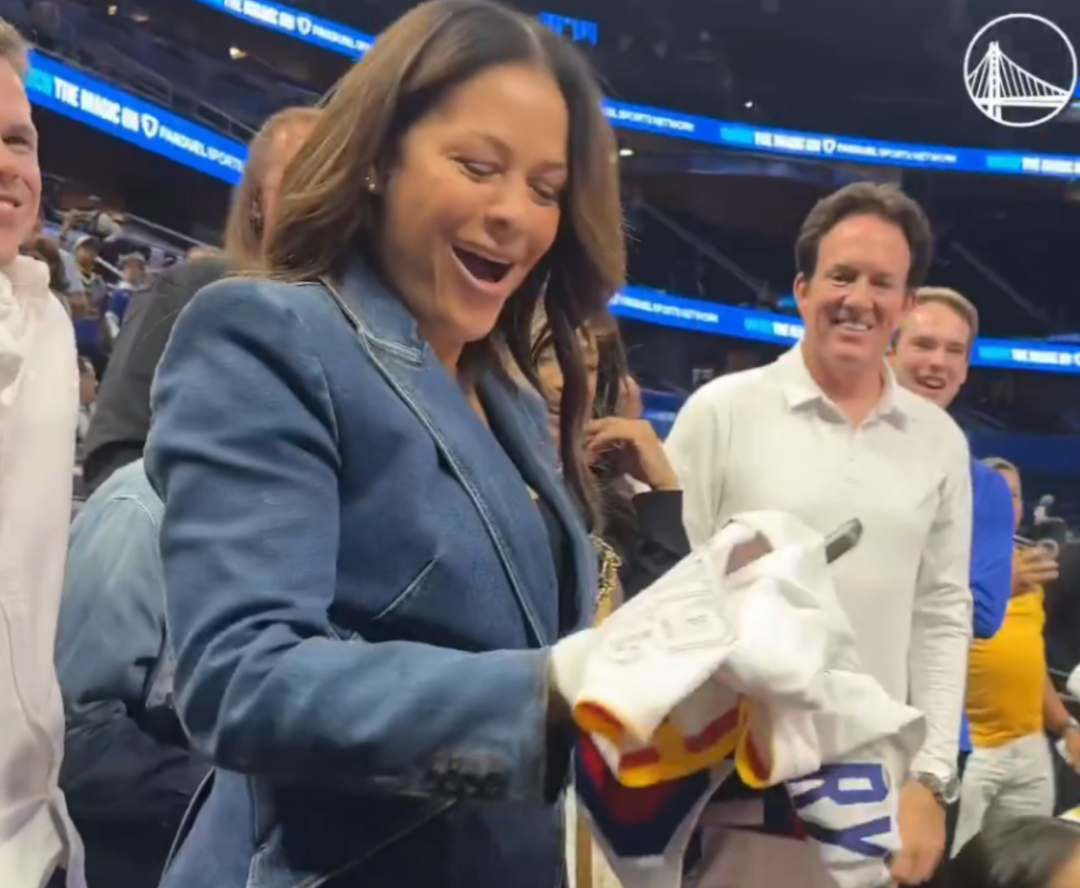 56分球衣送给母亲!库里轰下56分后大喊妈妈:索尼娅一脸笑容接过礼物