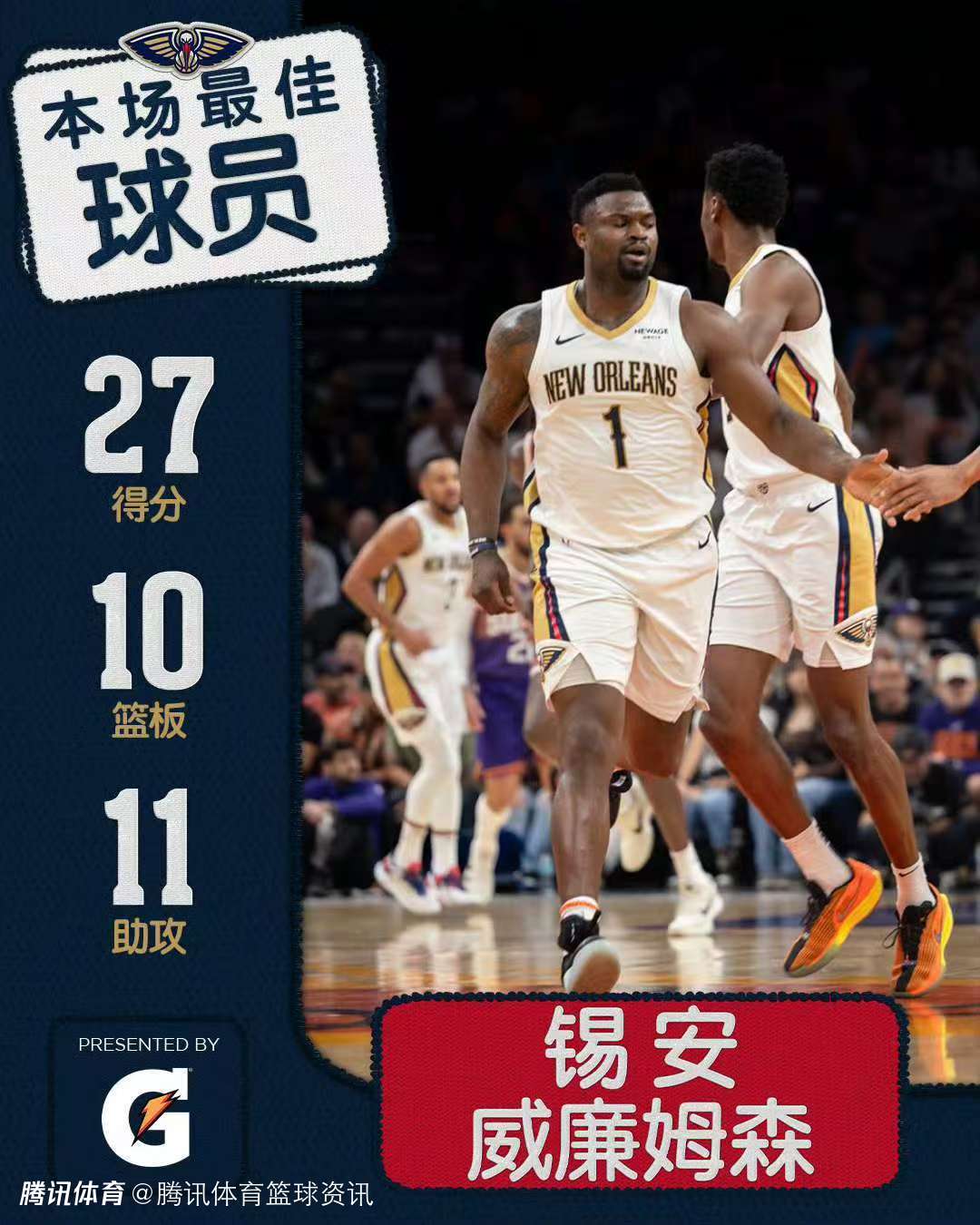 当被问及是否会参加背靠背第二场对阵太阳队的比赛时,锡安笑着说:“我得去问问领导层的意见。这是个好问题。”