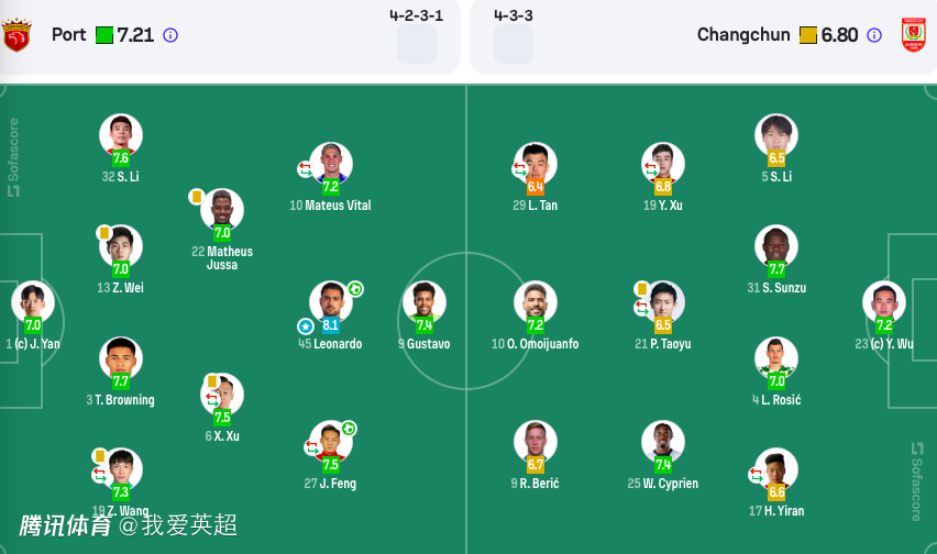 前锋:27-冯劲(68'26-刘若钒)、9-古斯塔沃(F)、45-莱昂纳多(F)
