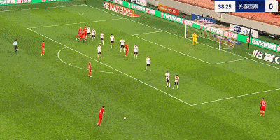 第7分钟,古斯塔沃点球点位置一脚爆射,吴亚轲神扑力保球门不失。