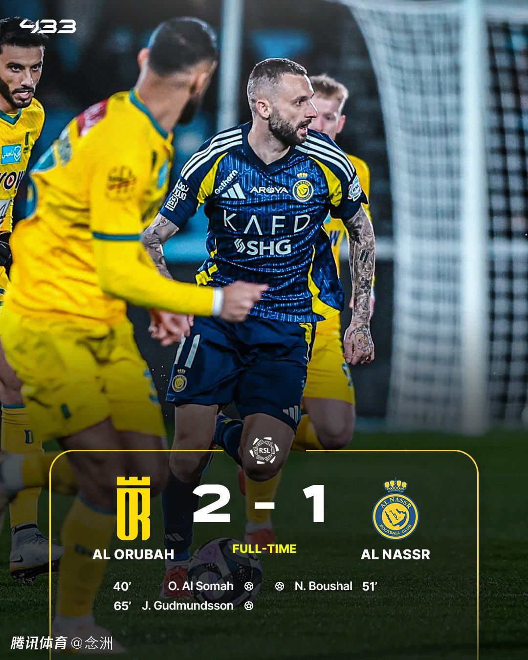 沙特联:利雅得胜利1-2欧鲁巴赫