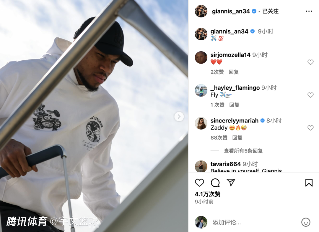 字母哥晒登机照出发客场之旅,雄鹿将会在客场连续面对独行侠和老鹰
