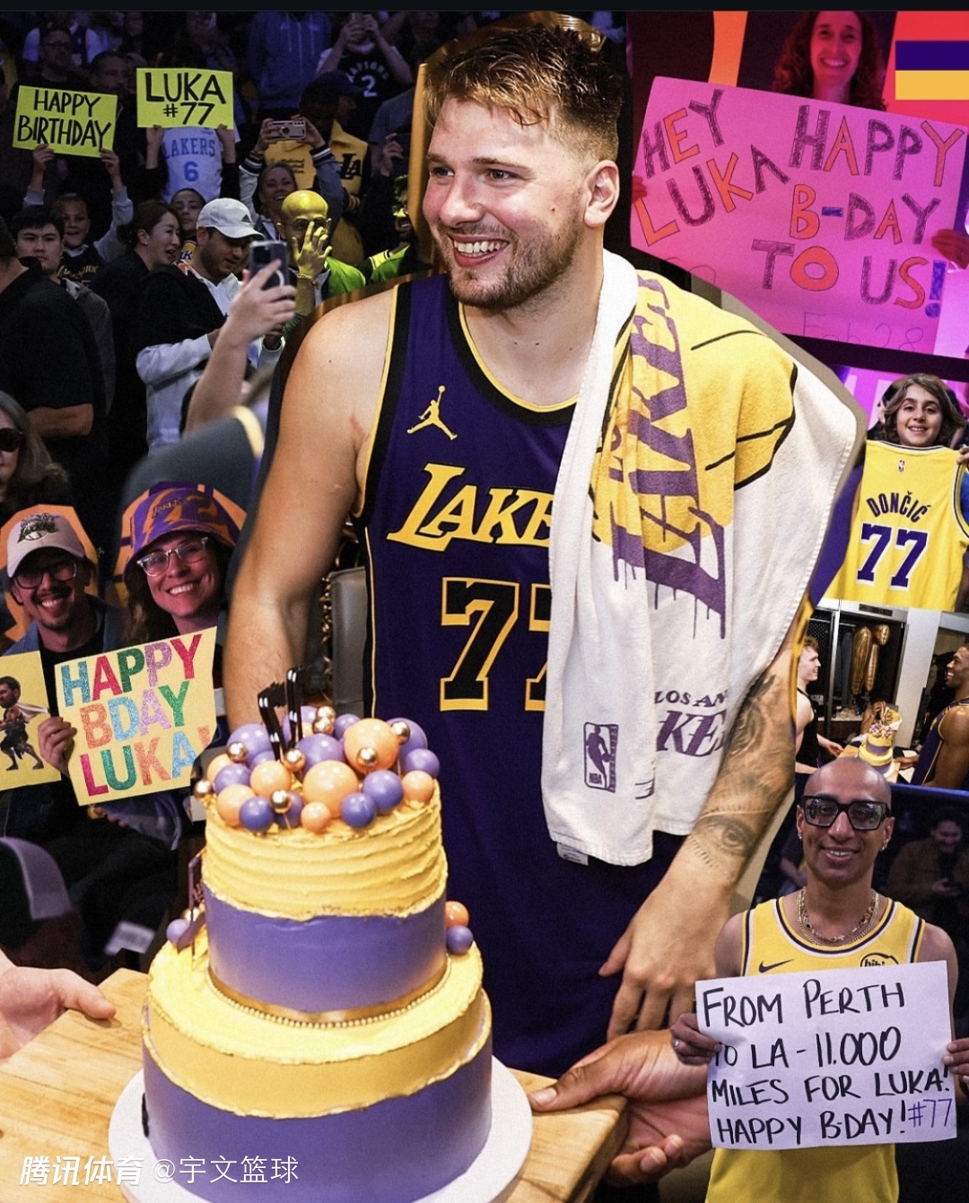 湖人在更衣室里为东契奇准备了生日蛋糕