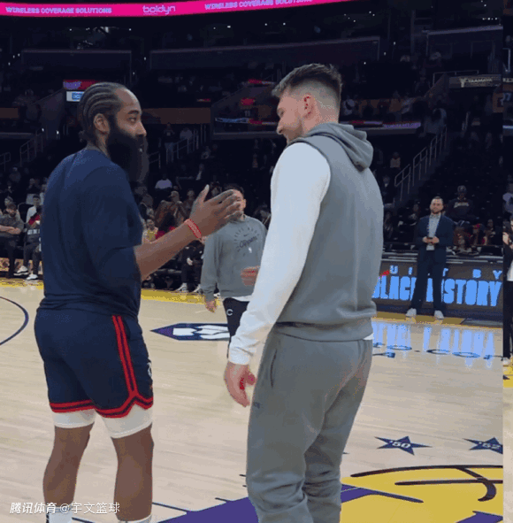 东契奇和哈登迎来洛杉矶德比的正面交锋,两人赛前友好寒暄互相问候