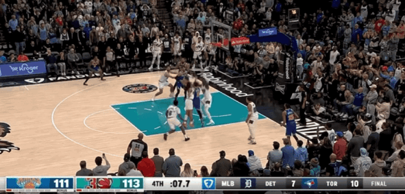 灰熊在前三节一度取得12分领先优势,但遭到尼克斯末节反扑,两队鏖战至最后时刻决出胜负。莫兰特打进关键2+1,帮助灰熊取得领先优势,甚至比出了经典的“打电话”手势,不过他庆祝得太早,阿奴诺比回头4.3秒命中准绝杀三分。随着莫兰特和阿尔达马连续错失反绝杀投篮,尼克斯险胜灰熊,灰熊被掘金反超掉至西部第3。