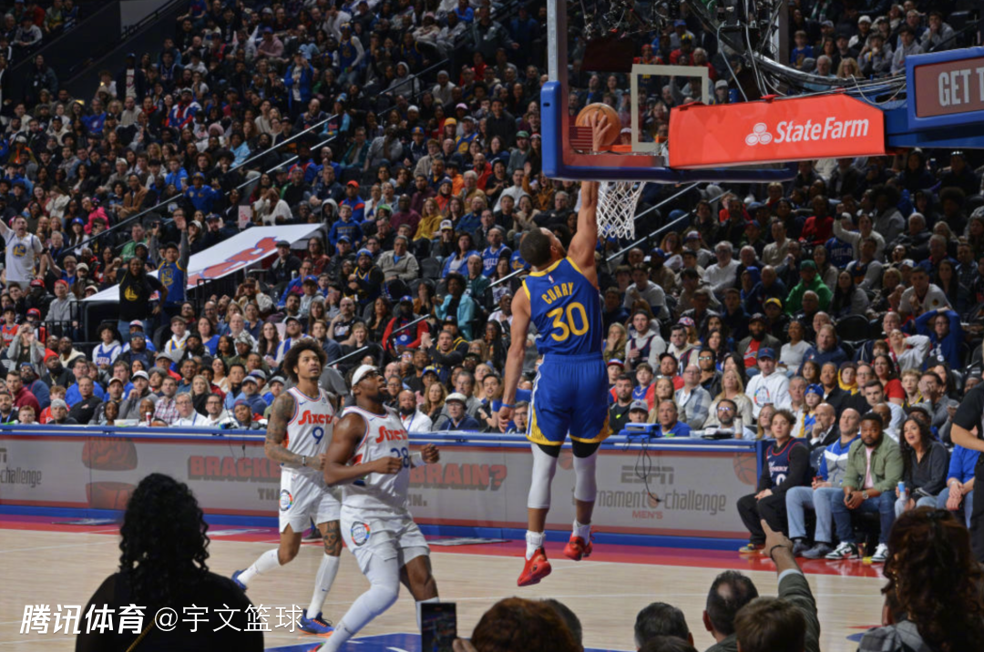 巴特勒转会勇士后首度缺阵,76人迎来格雷姆斯爆发,全场24中18,三分9中6得到44分创生涯新高,帮助76人持续保持领先优势,关键时刻多次挺身而出,不给勇士任何反超比分机会。随着桑托斯出现致命失误,乔治罚球锁定胜局,最终76人险胜勇士终结9连败,排名超越篮网升至东部第11名,勇士5连胜被终结,库里时隔6年在赛场完成扣篮。