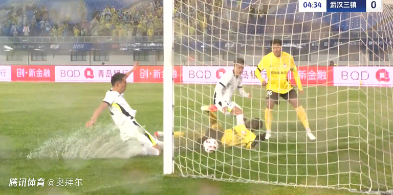 比赛开始仅仅3分钟,武汉三镇禁区内形成乱战,内尔松卢斯低射,段刘愚接力射门被魏黾哲一挡之后,阿齐兹几乎在门线将球挡入球门,而三镇后卫试图阻挡时甚至掀起了一片水浪。