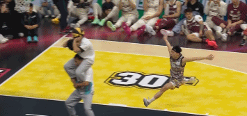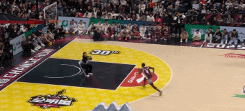 第一个出场的是矣进宏第一个选择与赵睿配合的罚球线前一步扣篮获得45分,第二个翻身拉杆背扣并没有成功获得34分,总分为79分。