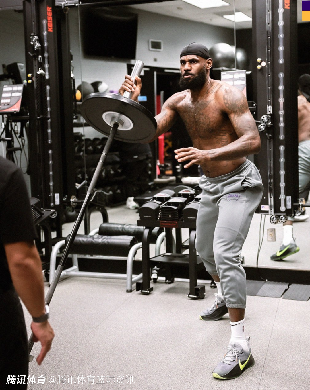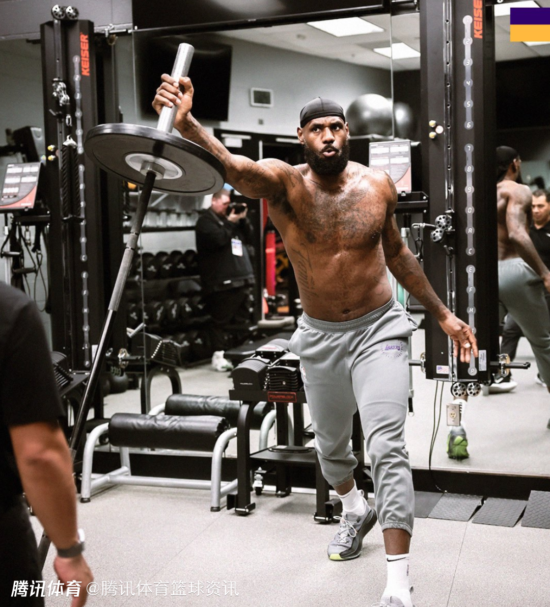 照片中,詹姆斯赤裸着上身,戴着Durag头巾进行训练,肌肉线条非常明显。值得一提的是,去年今天,詹姆斯的生涯总得分突破40000,成为NBA历史首人,当时湖人主场以114-124不敌掘金,詹姆斯在第二节面对小波特上篮打进,完成这一历史性时刻。