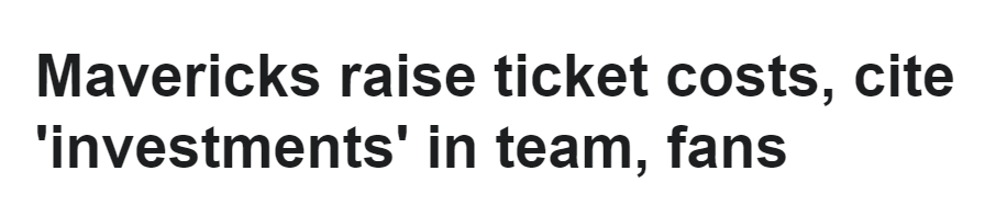 独行侠队表示,下赛季的季票价格平均将上涨8.61%,涨价原因是 “对球队以及球迷互动方面的持续投入”。