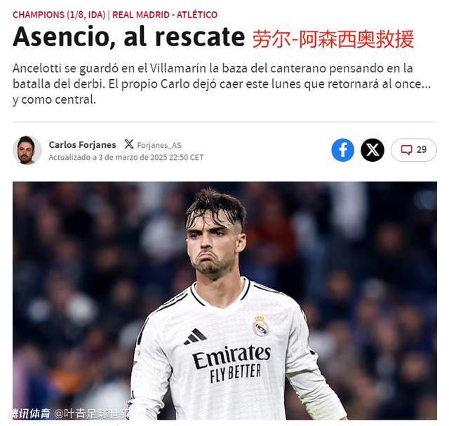 2025-03-04 10:30北京时间3月5日凌晨4点,欧冠1/8决赛首回合,皇马主场迎战马竞。赛前,《阿斯报》、COPE电台、relevo等媒体纷纷确认,22岁的中卫劳尔-阿森西奥将首发出场,扛起皇马的防守重任。