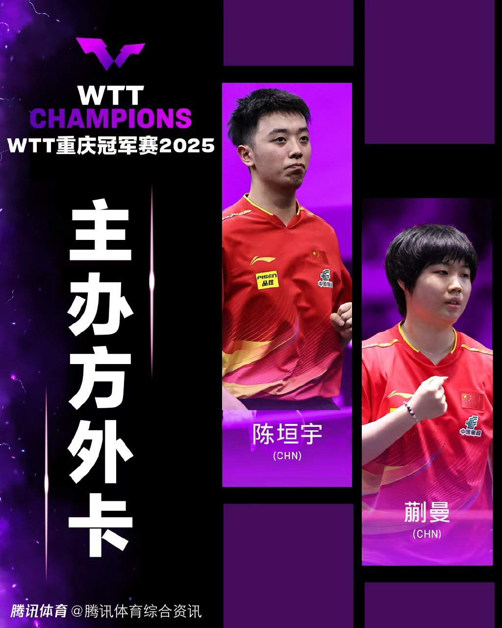 WTT重庆冠军赛2025主办方外卡及提名名单公布:陈垣宇蒯曼入选