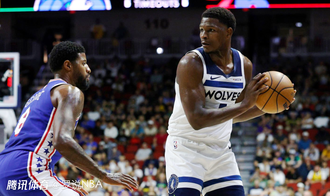 76人21胜39负, 排名东部第12;森林狼33胜29负,排名西部第9。