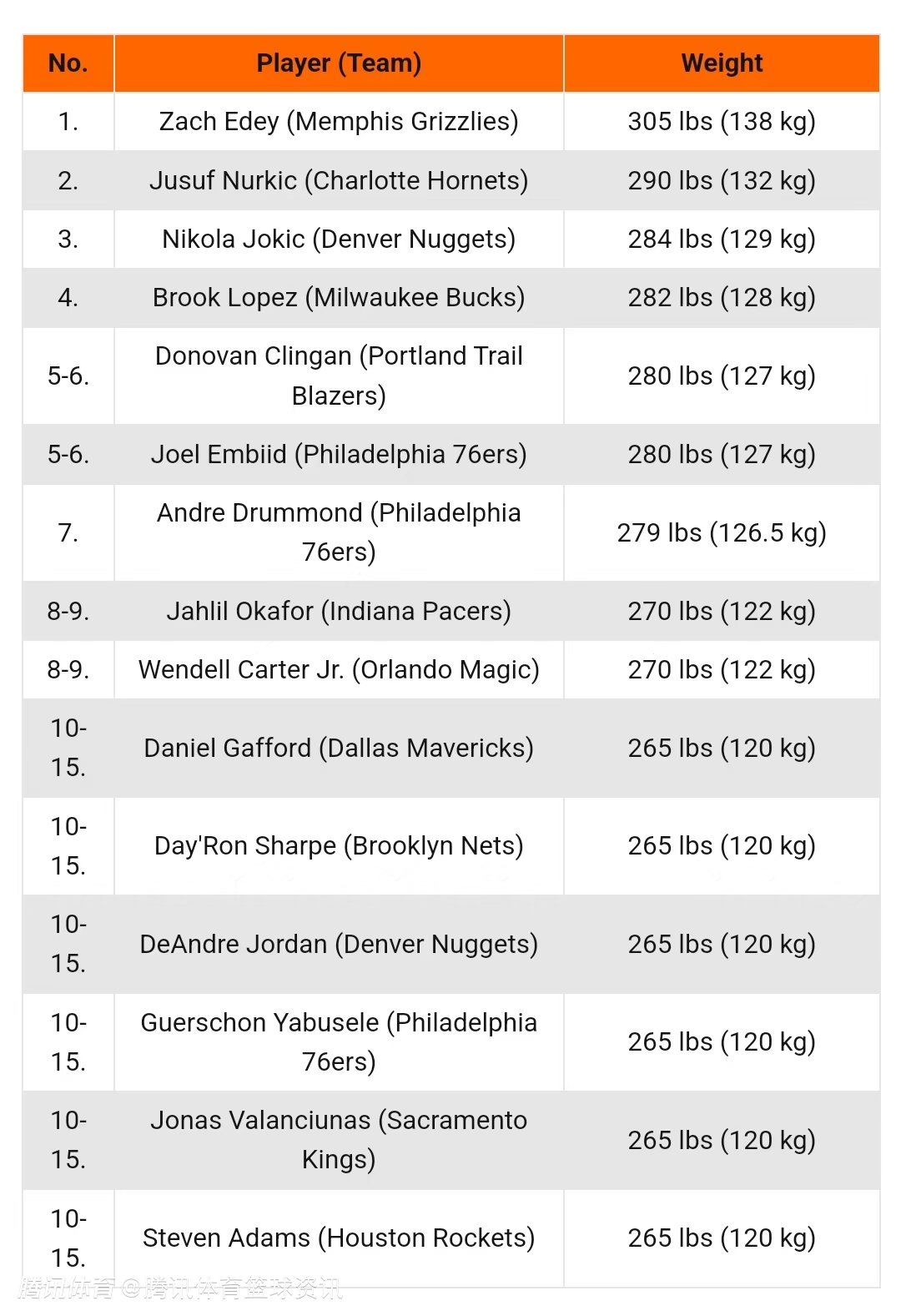 2025-03-04 21:20北京时间3月4日,据basketnews报道,目前,灰熊队的扎克-埃迪以305磅(138公斤)的体重位列NBA现役最重球员榜首,黄蜂队的努尔基奇紧随其后,三届MVP得主约基奇排名第三。