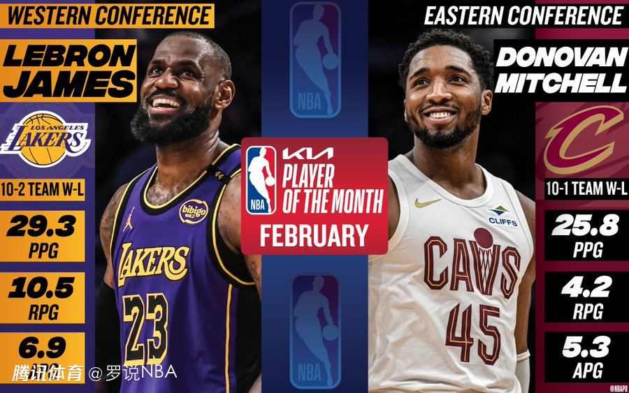 詹姆斯41次当选月最佳创纪录!NBA官宣2月奖项:骑士双喜临门