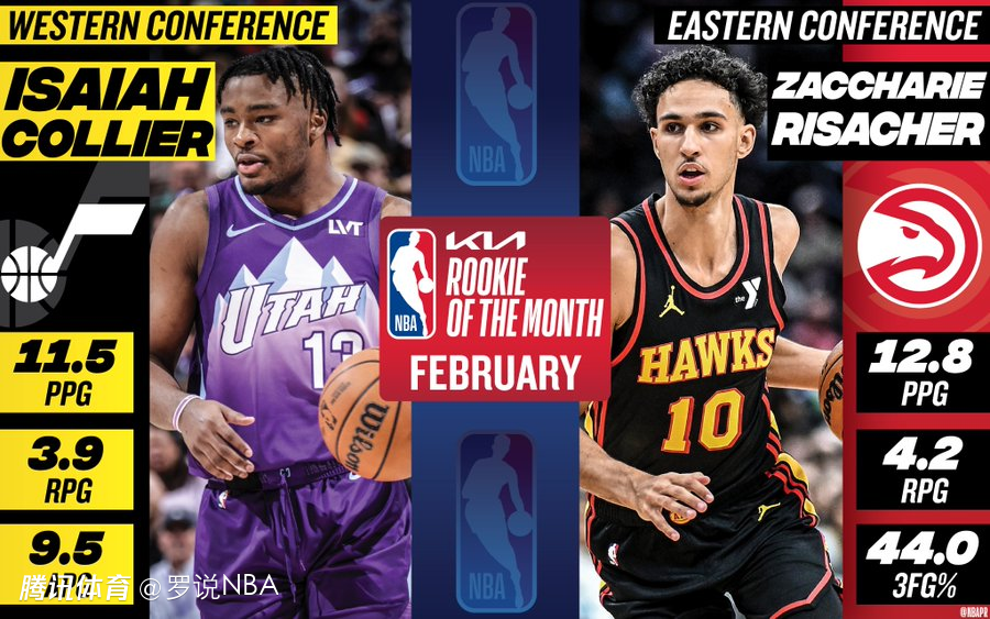 爵士的科利尔场均11.5分3.9篮板9.5助攻,当选2月西部最佳新秀;老鹰的里萨谢场均12.8分4.2篮板,三分命中率为44.0%,当选2月东部最佳新秀。