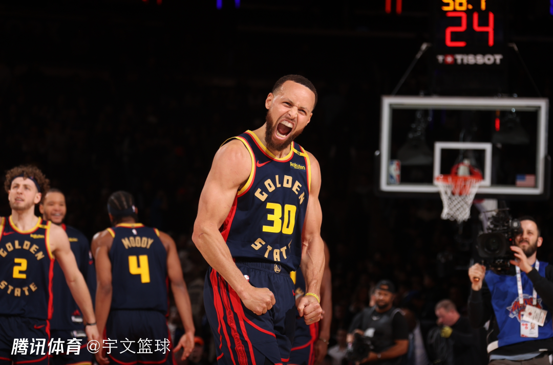 末节,希尔德和巴特勒带队12-8稍微扩大领先,争议判罚后尼克斯挑战成功,阿努诺比轰进三分以及造犯规两罚一中,桑托斯回应三分稳住局面,库里迎着防守轰进不讲理三分,穆迪空切上篮,巴特勒两罚一中,库里助攻卢尼暴扣,勇士打出11-0攻势,比赛还剩2分39秒勇士领先到12分;布伦森连得4分缩小分差,库里再中三分,布里奇斯命中底角三分,库里连续三次助攻杀死比赛,58.7秒库里做出晚安庆祝动作,最终勇士拿下胜利。