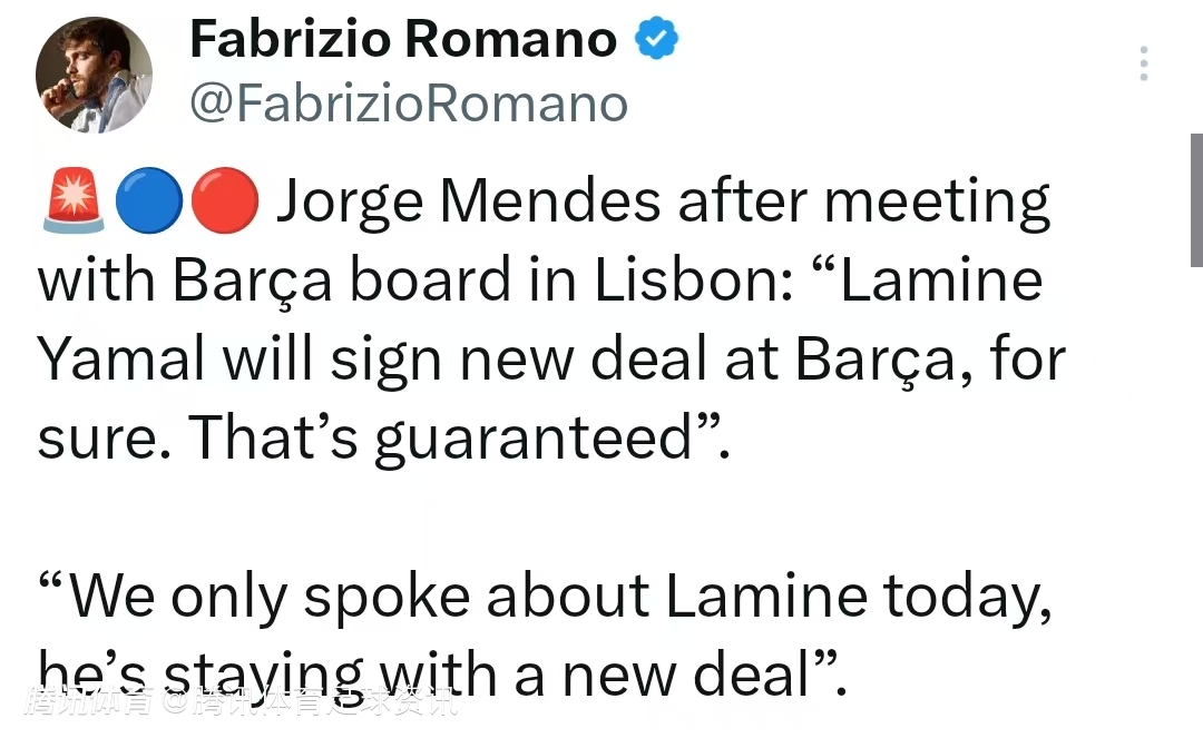 2025-03-05 16:20北京时间3月5日,据著名足球记者罗马诺报道,门德斯确认亚马尔会与巴萨续约。