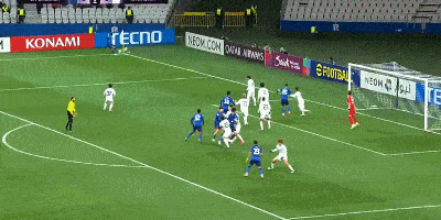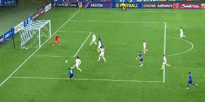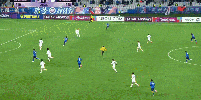 半场补时第4分钟,吴曦挑球倒钩射门被飞身扑出,VAR检查后示意不是点球。