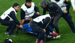 第72分钟,阿马杜拼抢中扭伤膝盖,被担架抬下场时痛哭落泪,高天意替补登场。
