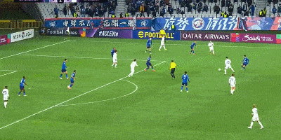 第76分钟,申花后场断球后反击,马纳法禁区右侧凌空抽射,川崎后卫高井幸大解围不慎自摆乌龙,申花主场1-0领先川崎。