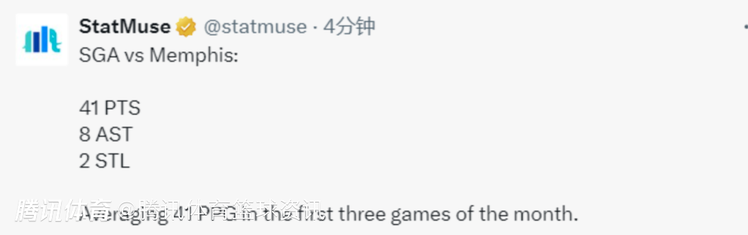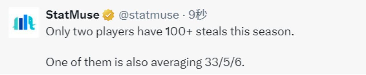 据统计,本赛季只有两名球员拿到100+抢断,其中一位就是场均轰下33+5+6的亚历山大,另外本赛季亚历山大已经分别轰下31分、41分和51分。算上今天这场比赛,亚历山大在3月份的前三场比赛,场均可以轰下41分,另外这也是亚历山大本赛季的第10次40+。