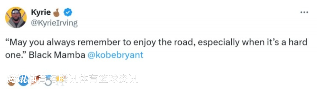 2025-03-07 07:20北京时间3月7日,独行侠球星欧文更新社媒,晒出了偶像科比的一句名言:“愿你永远记得享受人生旅程,尤其是在艰难时刻——黑曼巴@科比-布莱恩特。”
