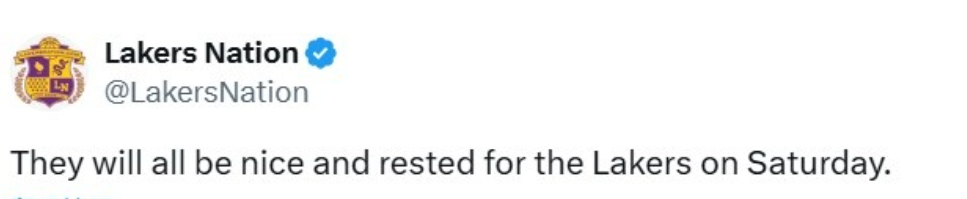 凯尔特人将在北京时间本周日(3月9日)主场对阵湖人,洛媒Lakers Nation转发绿军伤情并调侃道:“到了周六(当地时间),他们都会出战,如今都在做好准备打湖人。”