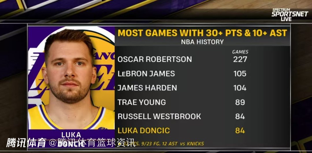 截至目前,当东契奇出战时湖人取得8胜2负的战绩,10场比赛中他合计得到238分81板81助攻,继詹姆斯之后成为队史第2位在前10场比赛达成至少200分50板50助的球员。