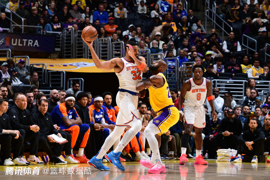 最终,湖人禁区得分44分,尼克斯禁区得分42分,湖人在禁区攻防战上还赢了2分。是不是有点反直觉?湖人失去安东尼-戴维斯后,面对拥有唐斯、米切尔-罗宾逊的尼克斯,本该在禁区攻防战上落下风啊?