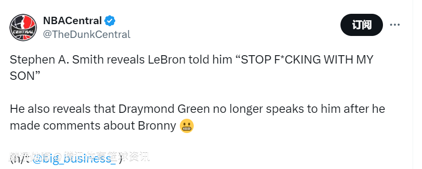 2025-03-08 09:40北京时间3月8日,在最新节目上,被称为“美国杨毅”的知名球评斯蒂芬-A-史密斯还原了詹姆斯质问自己的经过,并透露詹姆斯的好朋友追梦已经不再搭理自己。