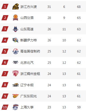 CBA最新排名:山东四杀北控升第3 4-10名竞争白热化 5队无缘季后赛
