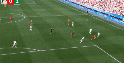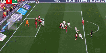 第45分钟,加西亚操刀主罚禁区前沿任意球,皮球越过人墙击中横梁,勒沃库森错失良机。