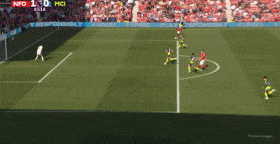 第83分钟,吉布斯怀特助攻,奥多伊禁区右路小角度抽射破门,森林1-0绝杀曼城。
