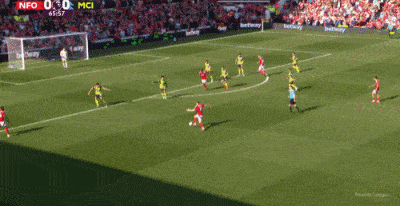 易边再战,第54分钟,森林队快速反击,努内斯放倒突破的怀特,被出示黄牌。