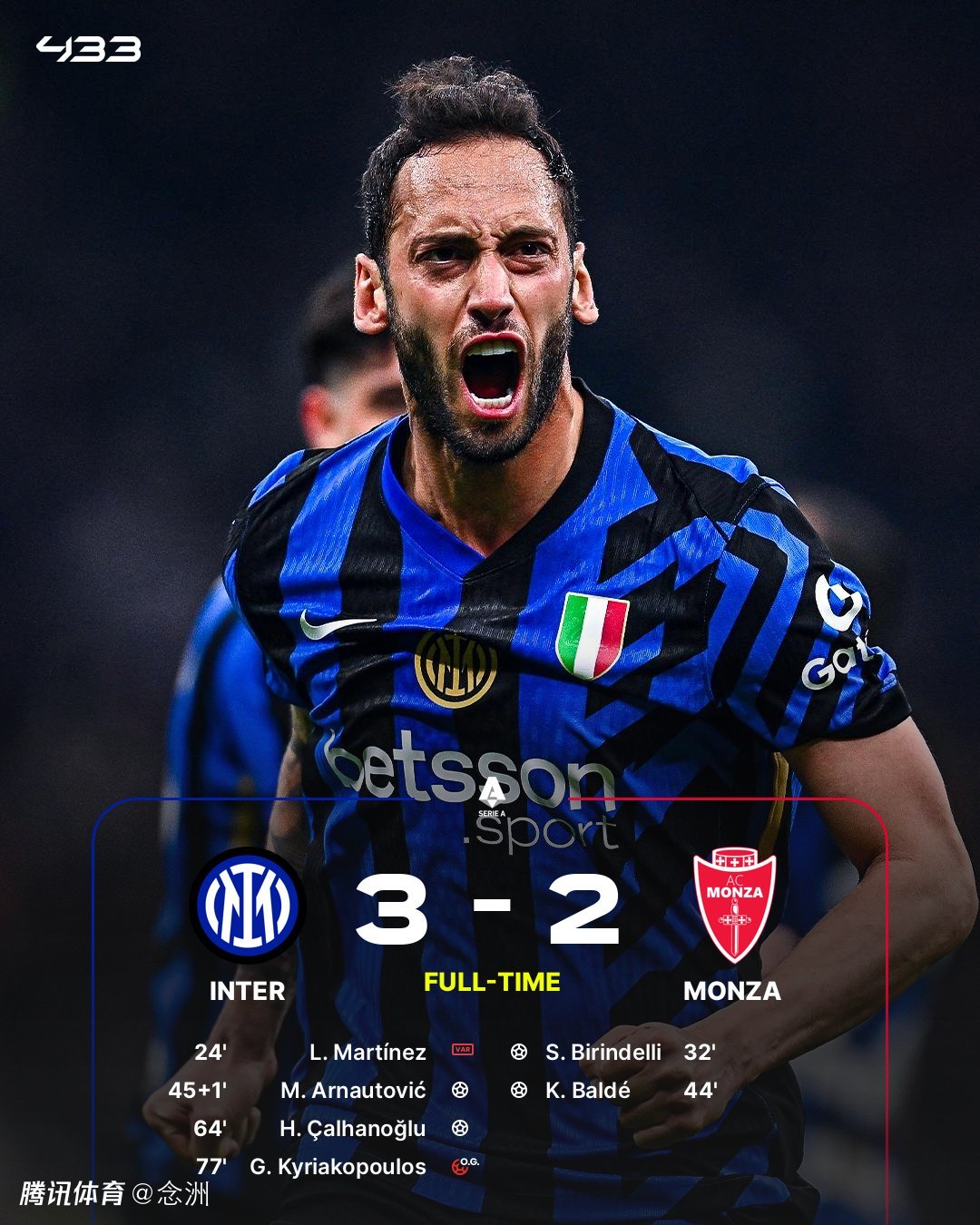 上半场补时,阿瑙托维奇头球扳回一城,1-2!第64分钟,恰尔汉奥卢凌空抽射,2-2扳平!第77分钟,劳塔罗头球迫使凯里科普洛斯头球自摆乌龙,3-2!国米逆转取胜!