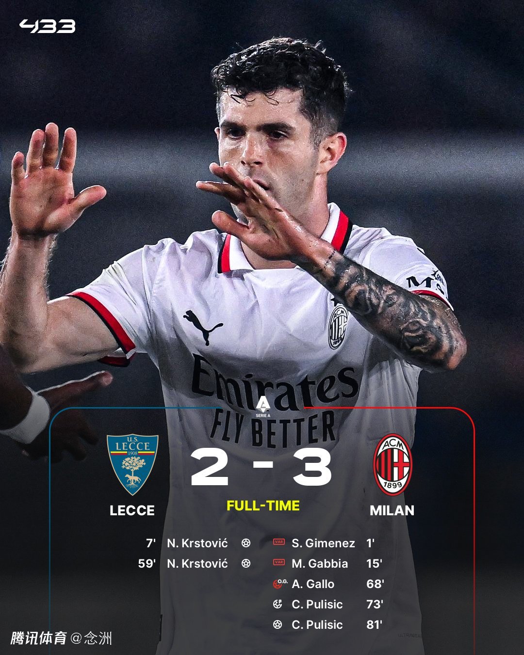 AC米兰在维亚德尔马雷球场客场挑战莱切。和国米相似,圣地亚哥-希门尼斯和加比亚进球被吹,克尔斯托维奇第7分钟轰入世界波,第59分钟再下一城,梅开二度,红黑军团0-2落后!