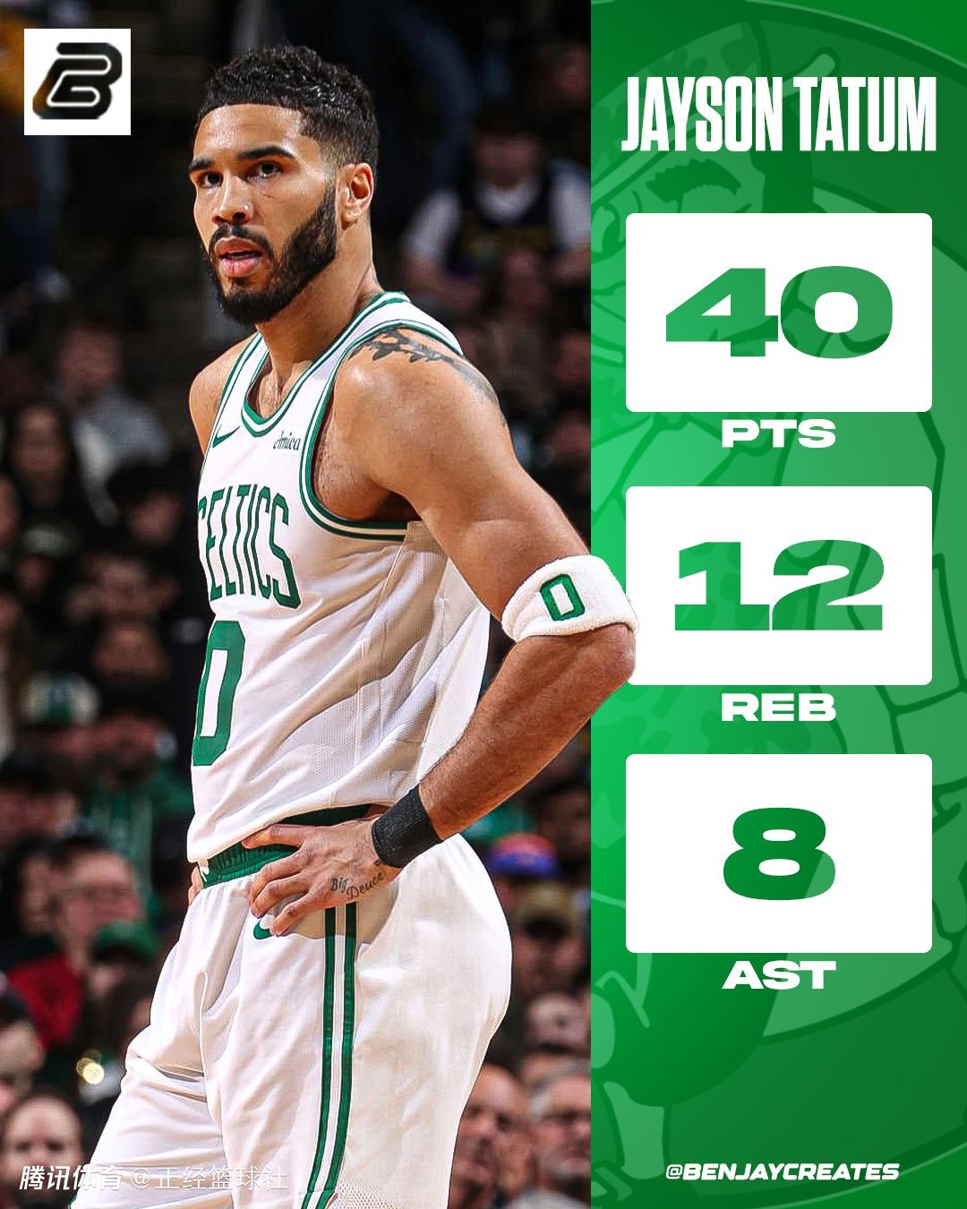 塔图姆闪耀黄绿大战!狂轰40+12+8获MVP呼声 攻防两端完爆东契奇