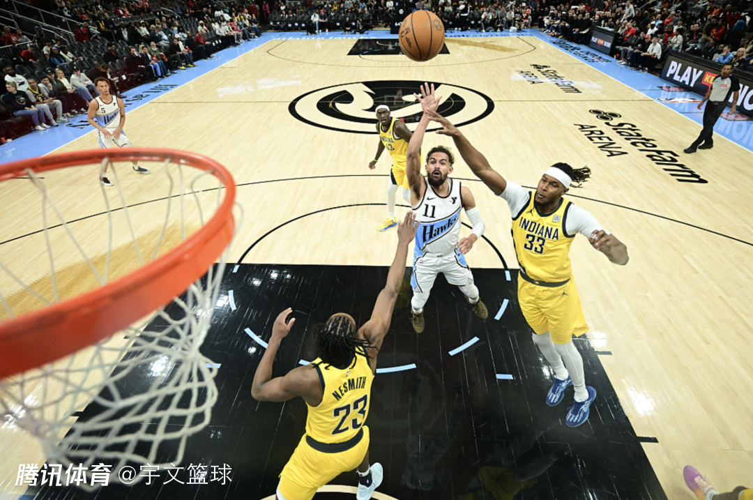 老鹰4人上双,特雷-杨36分4篮板8助攻,奥孔古16分16篮板,丹尼尔斯10分6篮板4助攻,勒维尔26分