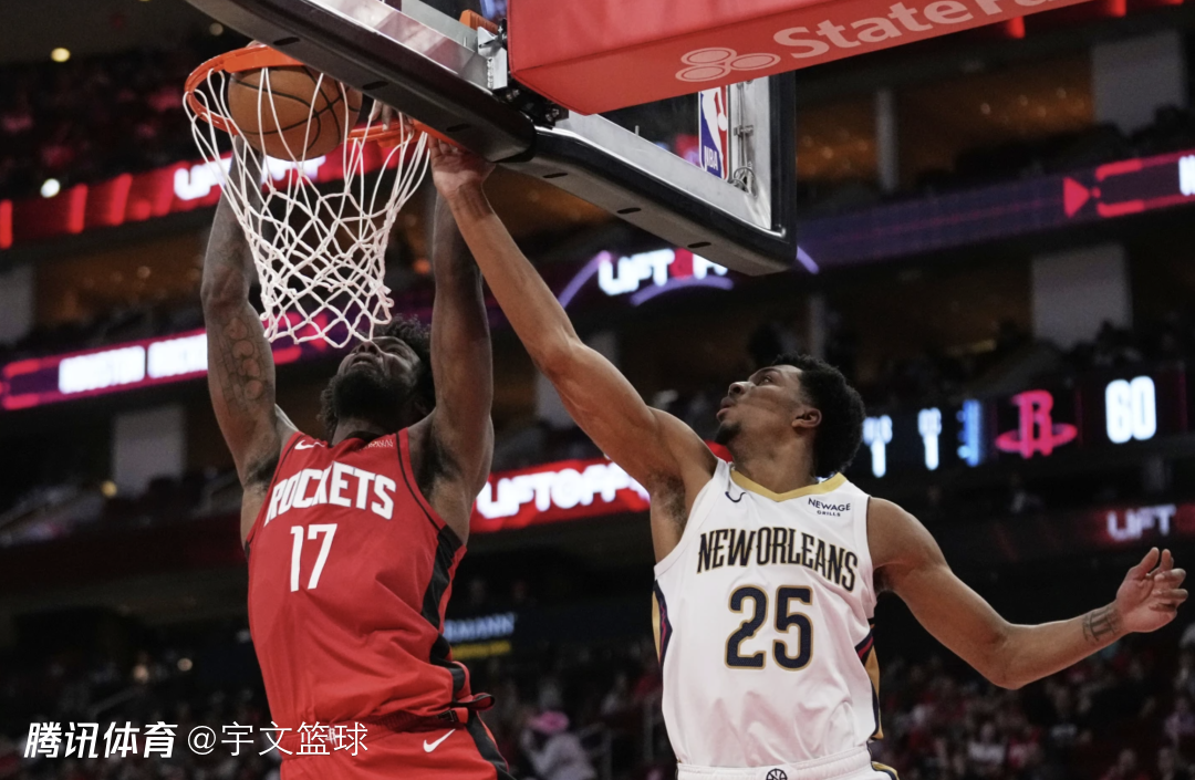 本赛季前三次交锋,火箭均战胜鹈鹕。本场火箭缺少谢泼德、范弗利特,鹈鹕缺少穆雷、波士顿、赫伯特-琼斯、布鲁斯-布朗。首节前两分钟双方仅伊森得到2分,麦科勒姆两罚一中,阿门三分与暴扣扩大7-1领先优势。鹈鹕冲击内线追分,狄龙与杰伦-格林接连三分命中,锡安上篮得分,阿门与申京连续得分取得19-11领先。墨菲、伊森与米西接连暴扣,阿门与亚当斯继续得分扩大11分优势,鹈鹕接连两记三分命中,火箭多点开花扩大12分优势。鹈鹕连追5分,申京暴扣与上篮连得4分,首节结束火箭39-28领先鹈鹕。