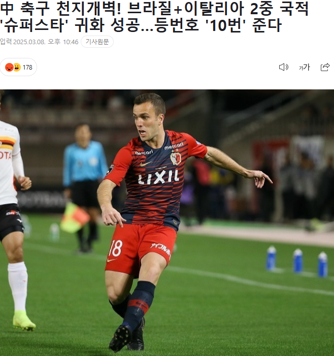 韩媒表示,塞尔吉尼奥在中国的四年里已经成为了联赛中最优秀的攻击手之一,并且已经完成了归化程序,获得了国家队的一席之地。“塞尔吉尼奥已顺利完成归化手续,正式成为中国国家足球队一员,并将于3月21日在与沙特队的世界杯预选赛中首次身披10号球衣亮相。”韩媒写道。
