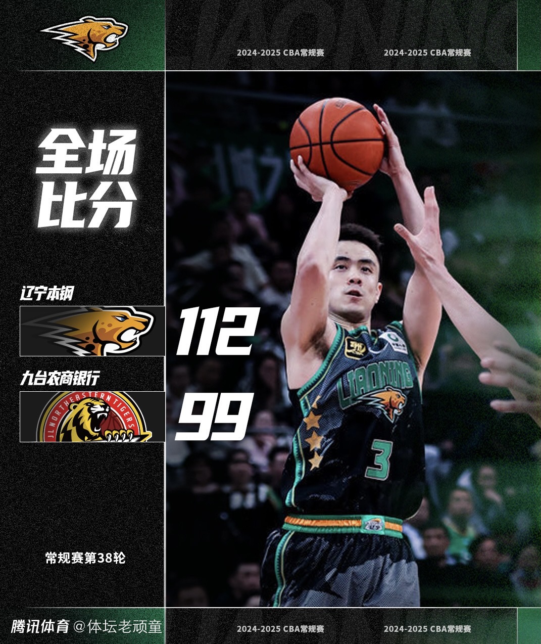 辽宁主场对阵吉林,这场东北德比辽宁开局不利,次节被吉林轰下32分导致半场打完还处于落后,好在下半场辽篮及时调整,赵继伟在外线的不断命中三分帮助球队反弹,最终辽宁112-99击败吉林,收获2连胜。
