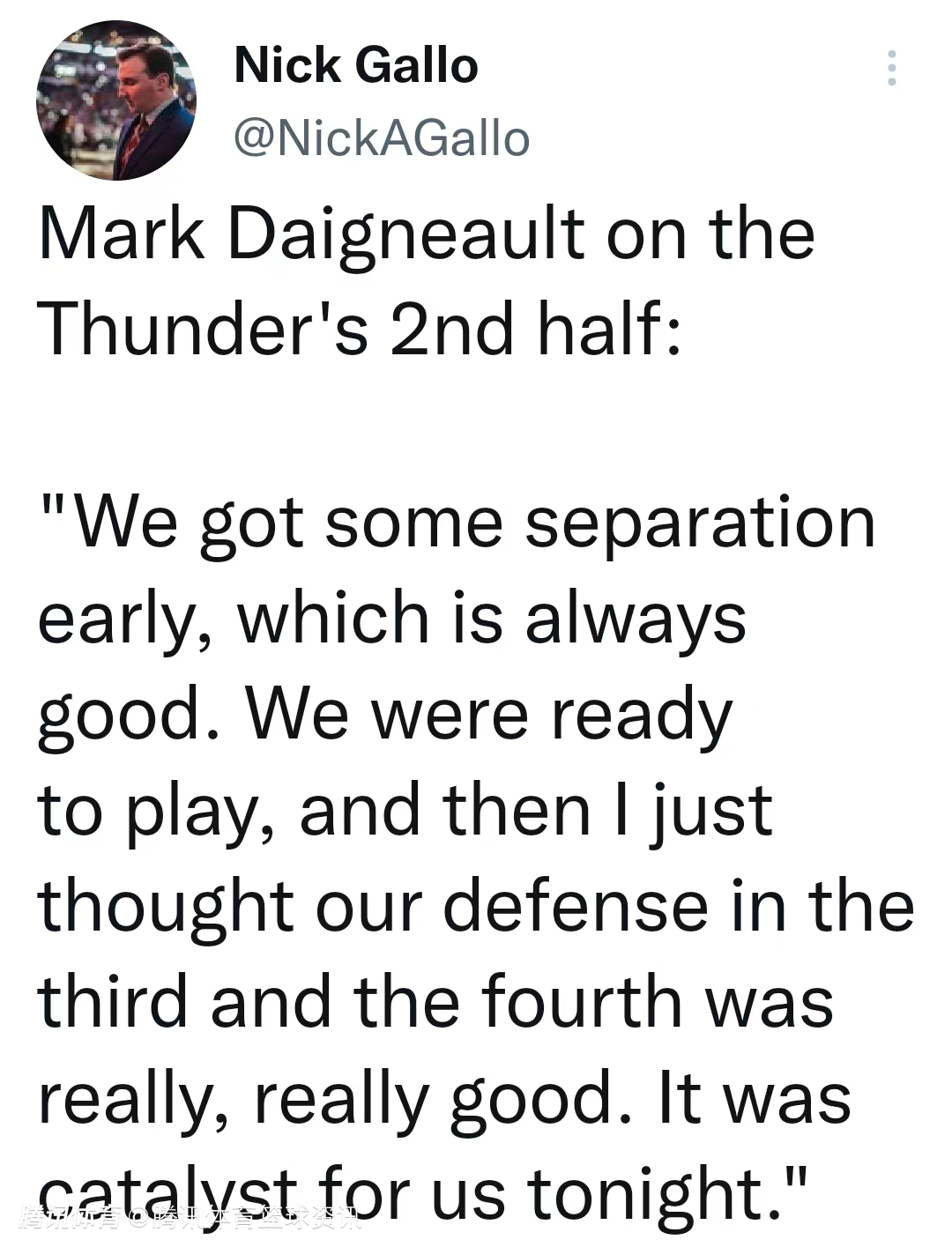 戴格诺特:下半场防守出色是今天获胜关键 杰伦威在比赛中越来越有侵略性