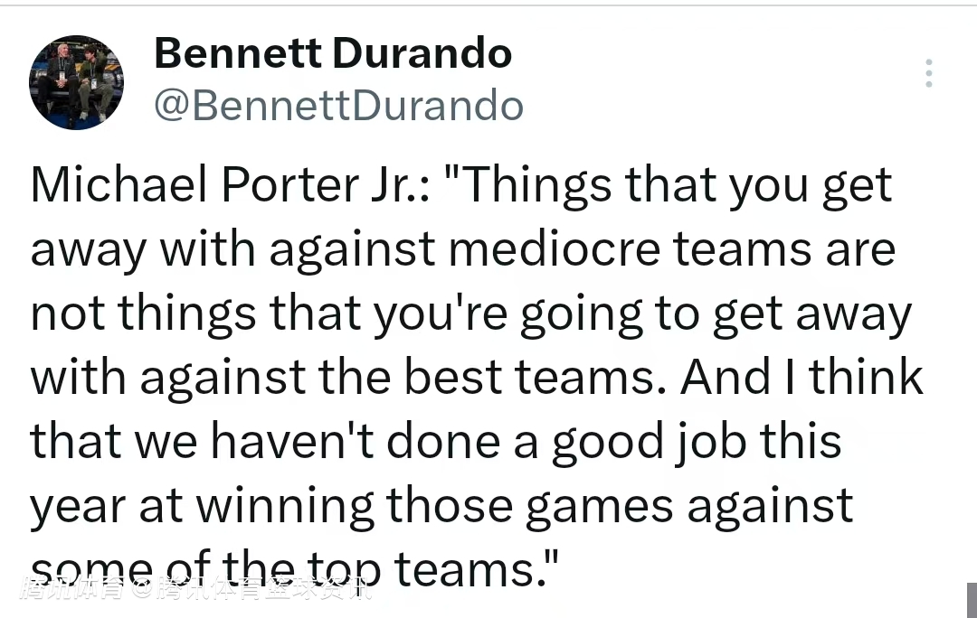 惨败西部第一雷霆!小波特:本赛季对阵一些顶级球队时我们表现欠佳