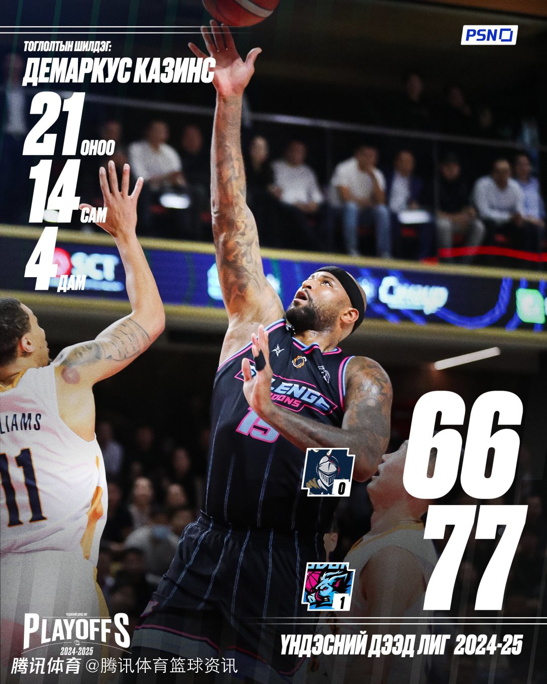 考辛斯完成蒙古联赛首秀 出战33分钟轰21分14篮板4助攻