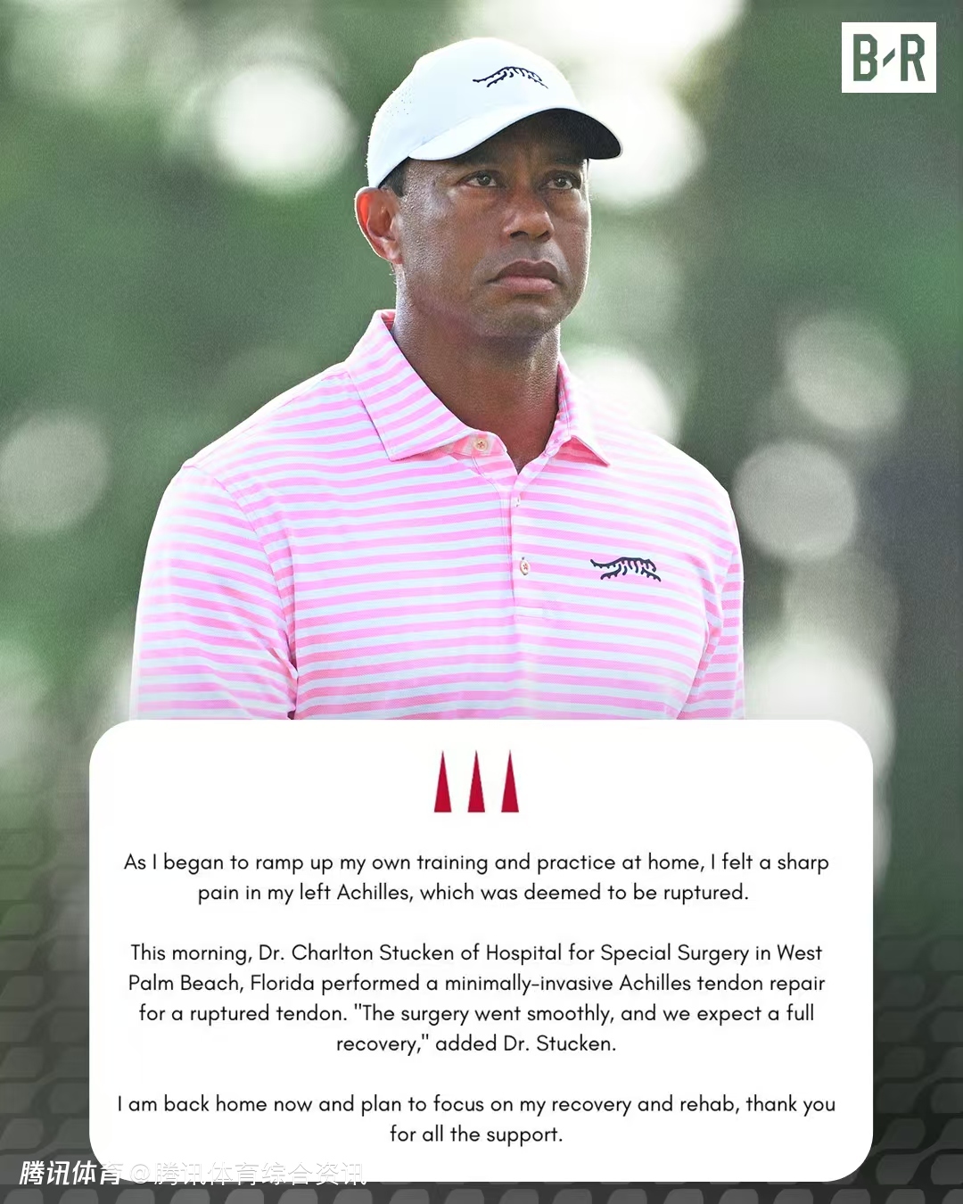 伤病退散!伍兹已接受左脚跟腱断裂修复手术 预计将完全康复