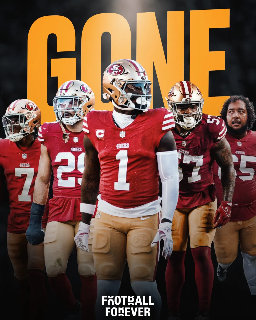 今天的49人,是自由市场上绝对的大输家。他们不仅在自由市场几乎是毫无动作,更是去了头号角卫查瓦柳斯-沃德、主力线卫格林洛、主力安全卫胡方加、主力护锋班克斯、轮换截锋杰伦-摩尔、替补跑卫伊莱贾-摩尔,还主动裁掉了九届职业碗全卫凯尔-尤什切克,有一种大厦将倾的既视感。