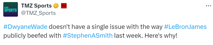 韦德在接受采访时对这一事件发表了个人看法,他坚称自己“喜欢”这两个人,但他坚决支持自己的老队友。韦德透露,冲突后自己还和史密斯谈过话,并对他说:“如果是我,我也会那样走到你面前。” 至于A-史密斯,他似乎也理解了詹姆斯的愤怒,尽管他在事件发生后的第二天在First Take节目中表示,他希望詹姆斯能在更私密的场合与他对峙。