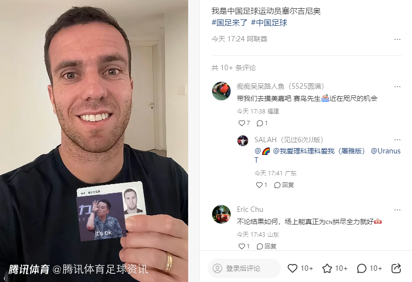 2025-03-13 18:10北京时间3月13日,已确认完成入籍的归化球员塞尔吉尼奥开通社媒并向球迷打招呼。塞尔吉尼奥晒出自己手持身份证的照片,并写道:“我是中国足球运动员塞尔吉尼奥。”值得一提的是,本条动态的定位在阿联酋。